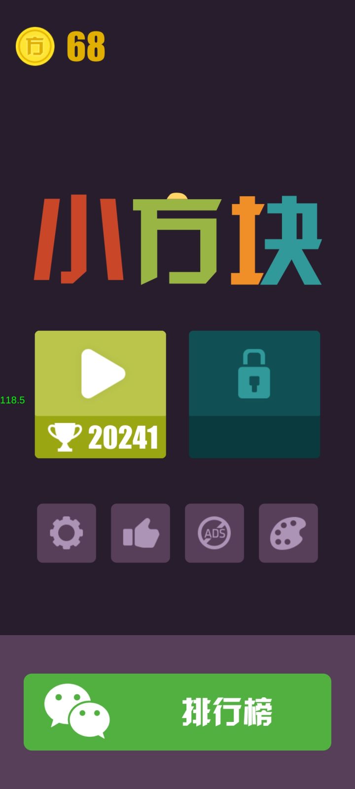 特色1、注意好要尽快的消除的,因为会随着时间的流逝上面会慢慢地下来;2、每一局结束后玩家都是能够获得不同的评分的,皮肤越高获得的奖励越多;3、在游戏中还有着商店的,玩家没事的时候就可以去商店中看一看。小方块游戏亮点1、这款游戏在玩起来的时候还是很有挑战性的,玩的时候要认真了;2、每一局游戏中玩家的下方都是有着两个随机的形状的;3、玩家需要去将这些形状给拼在上方让它们将相互消除掉。小