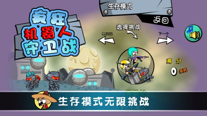 《疯狂机器人守卫战》一款非常有趣的守城小游戏,一大群失控的机器人正缓慢的向你袭来,现在就赶紧拿起手里的武器将它们统统都给消灭吧!