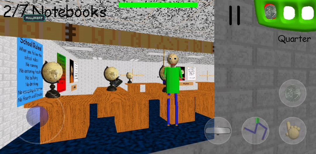 进入彩蛋地图后无法退出,你还会遇到两个类似(不知道怎么描述)的Baldi老师的原型,一个会跟随着你移动另一个只会原地不动的看着你