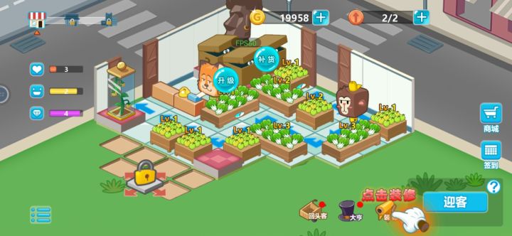 乍一看和Q超市差不多,但玩法有自己的创新点,进店顾客像塔防一样有明确的路径线路,货架的摆放位置像是炮塔一样,有朝向的设定对应顾客行走线路,上面货物种类固定,遇到有需求的顾客就会消耗货物。随着店面空间扩大,有多种不同形状的货架可以解锁,对应不同的货物,要满足不同需求的顾客就需要合理利用空间和货架位置,上手的难度并不大,但挑战比较难。
