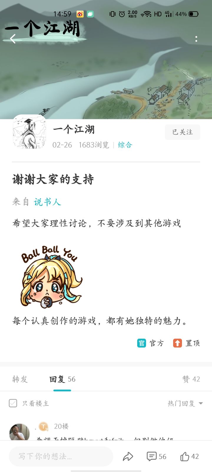 叮,您关注的游戏正在紧张开发中。今天应该会出公告。每个人心中都有一个江湖。我们只是一部分。 一花一世界,一草一天堂,一叶一如来,一砂一极乐,一方一净土,一笑一尘缘,一念一清静。 一人一江湖。