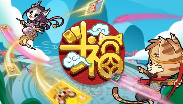 《斗福》是一款上手轻松的休闲卡牌对战游戏,它将中国传统麻将和日本花札与12生肖元素相结合,让你在对局中既感觉轻松有趣又能享受博弈的乐趣。在《斗福》中玩家扮演的是在喵庭当官的喵仙,帮助喵帝管理十二生肖守护兽,双方试图完成相应组合来降伏捣乱的守护神来获得分数,游戏以谁能更多获得分数为目的。游戏中有48张牌,分别对应12种生肖,每种生肖4张。而每种生肖的牌对应的神通运势各不同,分别有金、玉、福、气、