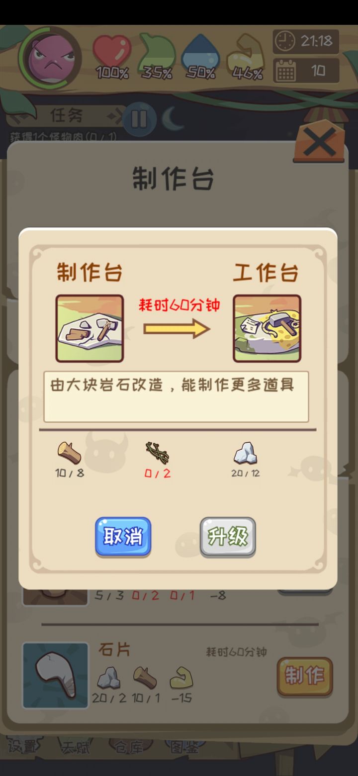 挺有趣的一款单机小游戏,一开始上手体验蛮好的,但死多了就发现不对劲了。首先是第三次进化需要的经验相对第一第二次进化,真的多了好多;天赋里食物发挥更大作用的buff加成太小了,对于角色庞大的食量来说一点用都没有;在没有怪打的时候,获取食物的途径太少,偏偏消耗又很快。体验感不好的点主要在于食物的获取与消耗和时间流速的比例上,这方面还希望开发者重新算一下。目前为止都是饿死在第三次进化之前,也不是不用心,每次都是死在找完食物回家的路上,次数多了真的会很烦躁的
