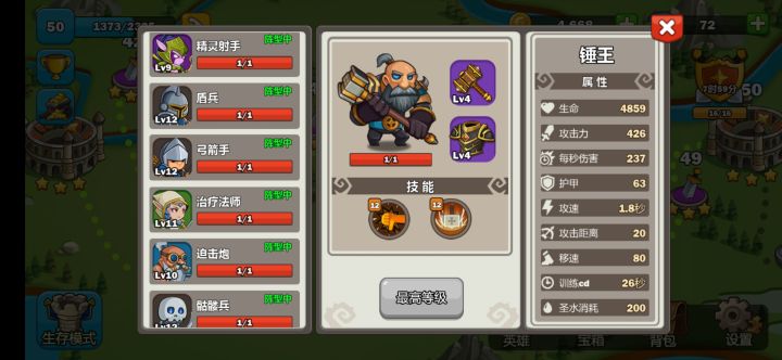 看大家很多都已经玩通,开始催我更新了。上次更新完后一直在做新的要更新的内容,估计至少还要一个周才能调好(如果超过10天,很有可能是春节过后再上了),调完没问题了一定会第一时间去更新的。如果大家还对游戏感兴趣,可以每天就领金币、扫荡,满级的英雄卡还在,到时候开新等级了直接就可以去升级。更新计划主要如下:1. 提高普通模式的英雄等级上限2. 增加生存模式关卡数及提高统帅、英雄、市场、城堡等级上