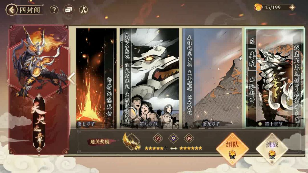 水天子可有可无,换其他自己有练度高不容易死的角色一样的,不靠他输出。 卫宣和勾陈两个多动症工具人配合打雷是输出主力。 通天bug神器也是越级必须的,后期练度起来可以不要。有通天可以多打一层。 我没通天的情况下肯定是凹不过10的。 boss残血上上伤溃buff,最后剩风晴雪一个人开个无敌拖两三回合无情翻盘😂 这个坦克也是必须的,自带净化,燃烧对于两个多动症非常伤。 总结,除了水天子可以换,其他4个基本是最优解了。 我这个练度只能挂机装备9,但是这个游戏有个好处,过了之后可以探索收菜,60体2小时。所以只要能比较轻松过9的话,就可以试着凹10了。自动战斗30次放在那里,过一次就行。 这游戏5星和6星差距不大,反而装备加成非常恐怖。 所以有1-2个6星就不要再刷经验了,先搞装备本。