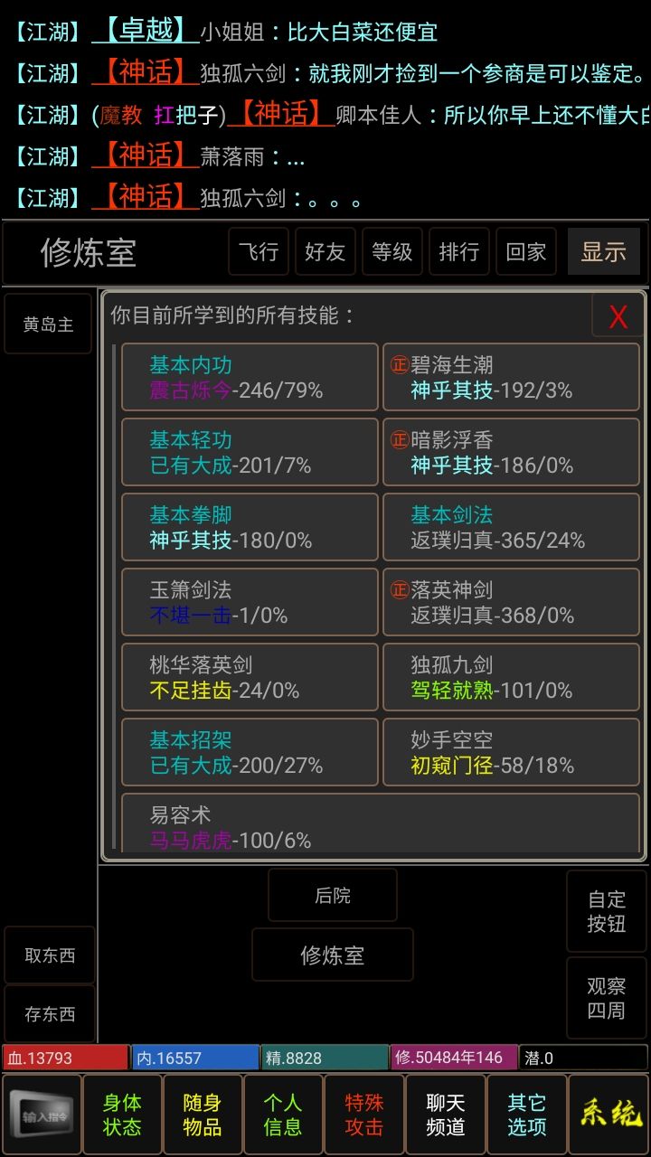 穿上新手礼包的装备后,吃下修为丹(由于进入销魂宫要一百年修,所以要吃修为丹,才可以进入销魂宫刷怪),然后去长安客栈(新手村广场左边聚义厅之后就是长安客栈了)拜入门师父,拳法少林,剑法桃花,刀法魔教,这是最传统的玩法,这样玩也比较简单,前期潜能(潜能是向门派师傅学艺需要的一种消耗品)都用来升门派武功(包括内功和轻功的门派武功)。基本武功(基本武功就是基本剑法,基本拳法,基本刀法,基本内功和基本轻功)