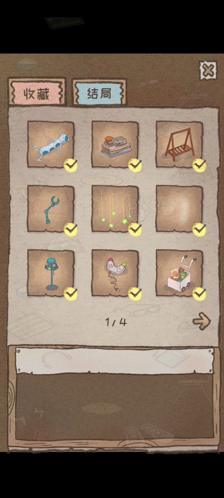 通关留念收集物品还算是挺快,作为填充闲暇时的小游戏挺ok的。结局没刷齐,懒了。