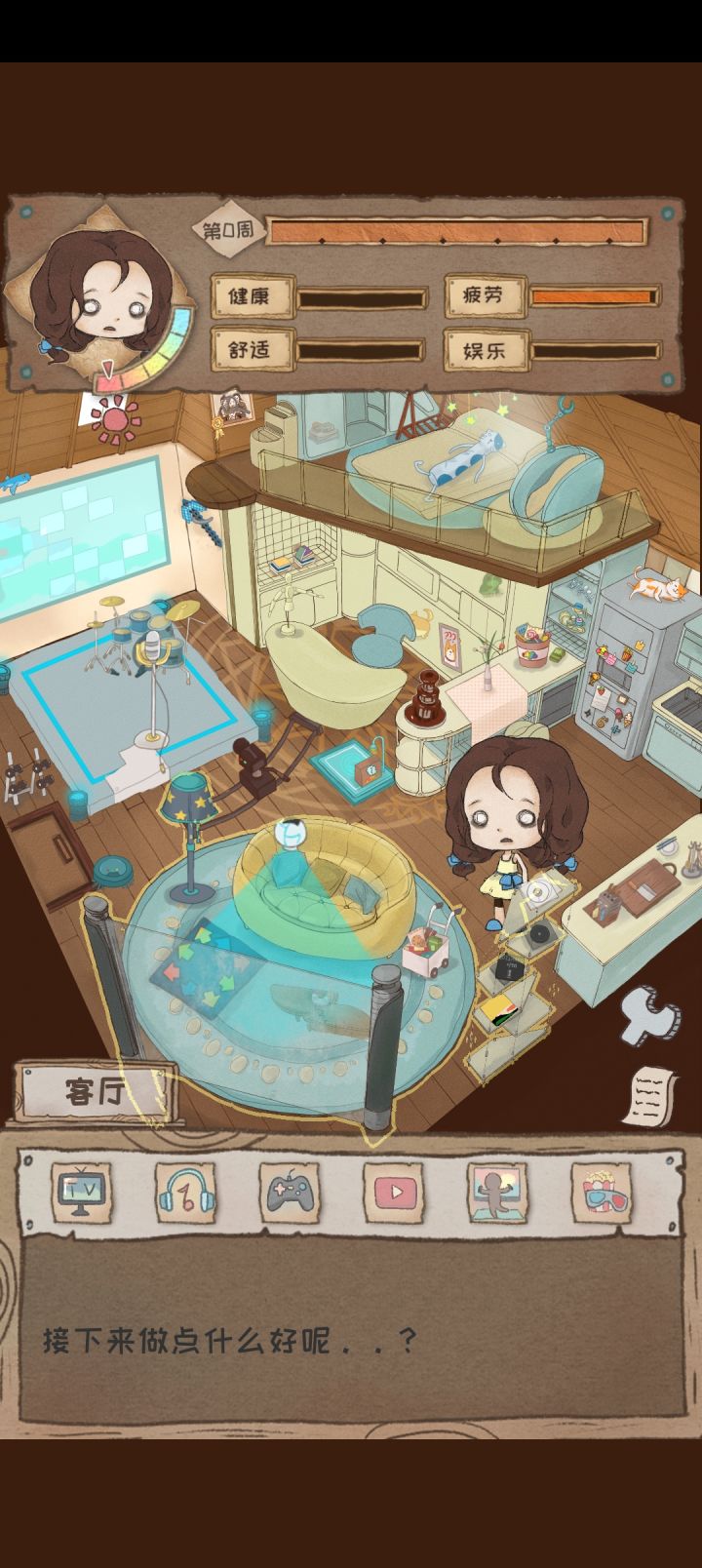 全部收集完啦,10个结局(不懂的可以问我,我尽量答)说一下比较难获得的:1.完美的一年,前几周点击厨房最后一个,让心情保持在5,后面就保持疲劳低,其他三个较高2.绝赞的一年:前几周点厨房最后一个让心情保持5,后面疲劳度为0,让其他三个是绿色的(在厨房,客厅,卧室来回点就能保持绿色)