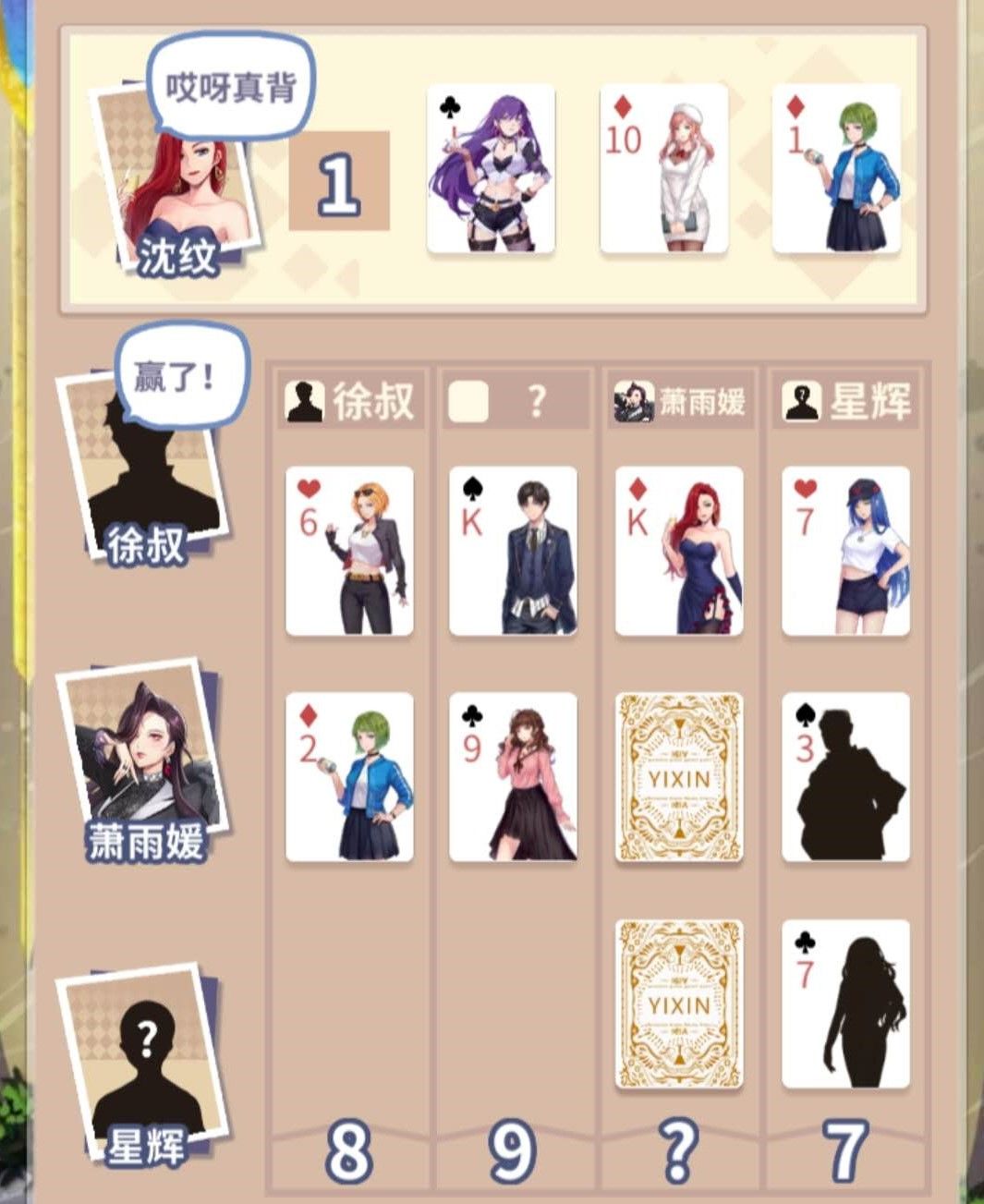 警告:小贝者怡情,以下内容可能引起你对游戏主体玩法失去体验及乐趣,不利于游戏生态良性发展。 教训:在付出了40%持有资金的学费后,我终于确认这不是Black Jack(21点)规则。 (求和个位数)比大小规则: 人数:1名庄家及3名玩家。 配件:一副没有Joker的扑克。 流程: 1. 明发4张玩家底牌及1张庄家底牌。 2. 玩家依顺位选取自己的底牌。 3. 玩家依次选发盖牌,直至开牌或满3张。 4