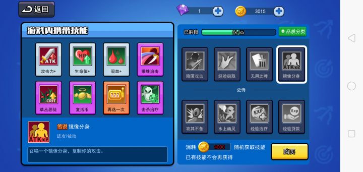 本人认为的最佳技能搭配首先,是传说技能镜像分身,双倍攻击,这个不用多说了吧经验治疗,经验基本全图都是,点了这个基本不会打下50%就算下50%也没事还有重伤嗜血如果对方比你发育快,并且你赶不上你就用这个吧,开局这个也可以和对方拉开经验差距这个在草丛基本无敌,但限制在草丛,如果技术不好建议换成加暴击的技能加暴击是搭配这个的,加80%暴击伤害,再配上镜像伤害可想而知有多恐怖这个是在被好几个
