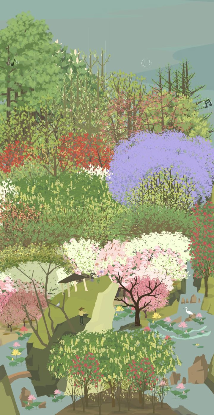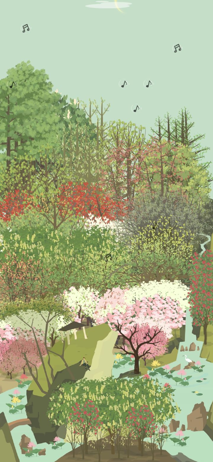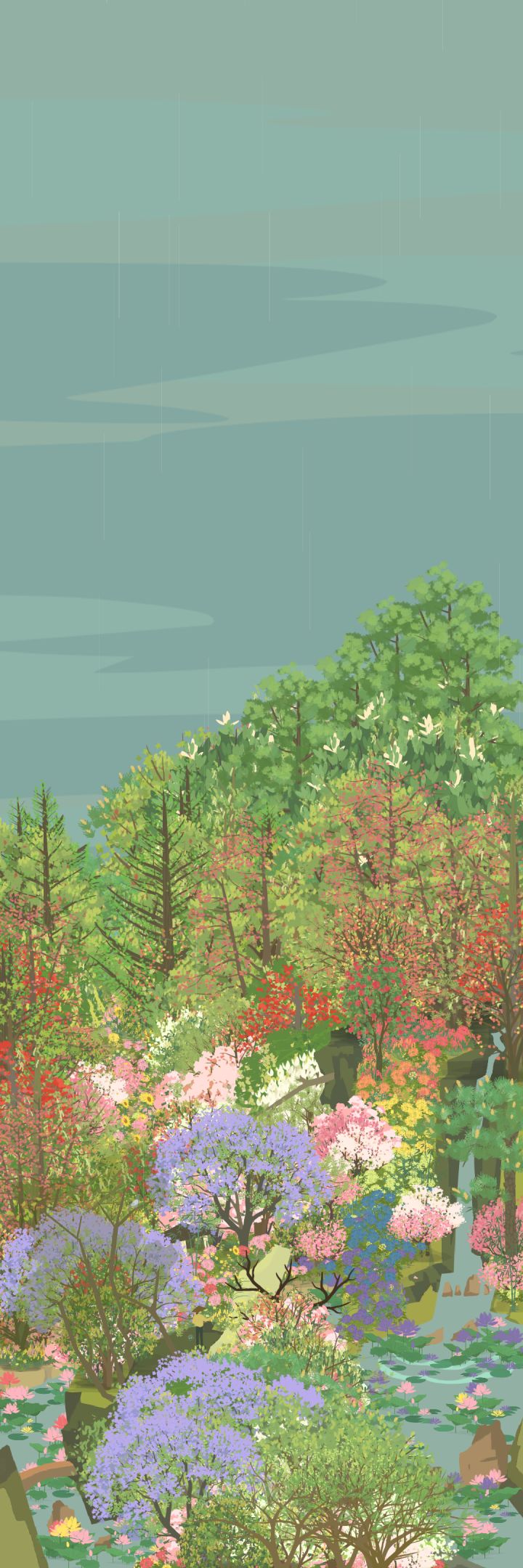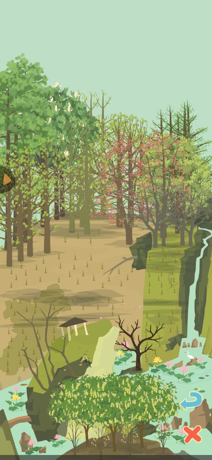 其实乱到一定程度也挺好看的…或许可以试试把山头分成几个区域,每个区域按高矮、颜色区分,前矮后高,深浅交叠;试试设计一条路,会有明显的线条规划感;当然还有很多高级图案,还有不同树叠种的效果,可以在论坛里找找大家的布局参考。