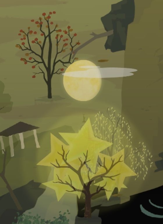 月亮树被挡的死死的,有点难受,“那个,小星星……”“干嘛呀,干嘛呀”,星星树亮了起来,“呃……你好像又长大了一点哎”,月亮树有点犹豫,“真的嘛!你放心,我一定让别的星星看不见你。”月亮树有点奇怪,为什么要这样做呢,“不然,要是让他们知道,月亮是你升起来的……”星星树更亮了,“他们会来跟我抢你的!!”月亮树看着那柔和的光芒想,“嗯…这样好像也不错。”
