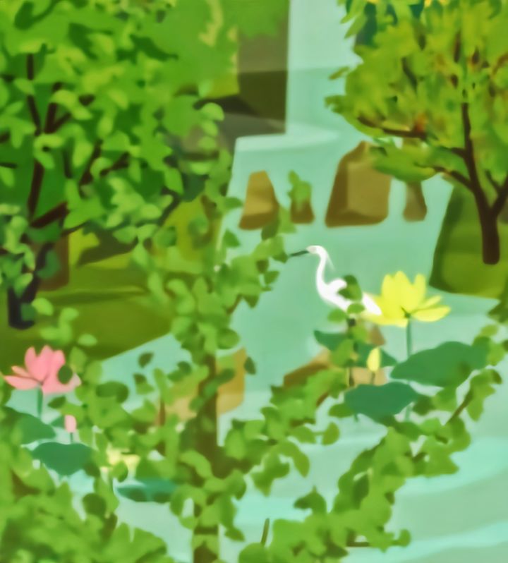 小会,今天早上我去看树,一个矮胖的黑汉子从树林里钻出来拦住我:“你见我老婆了吗?”我问:“你老婆长什么样?”黑汉子想了想,看看自己说:“跟咱很像,”顿了顿又补充道,“比咱胖一点。”我忽然想起刚才在荷花水塘那边有个矮胖的身影,告诉他:“水塘那有个人,不知道是不是你老婆。”他便十分敏捷地跑开了。我回来的时候又看见他,站在树林边远远地朝我大喊:“谢谢你种树的,咱叫风荷,有事跟咱开口!”