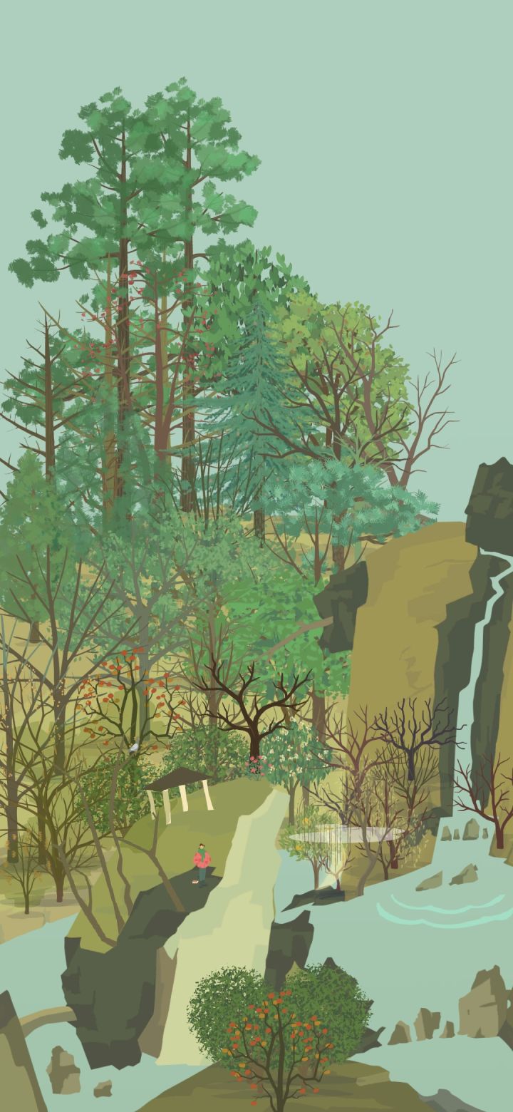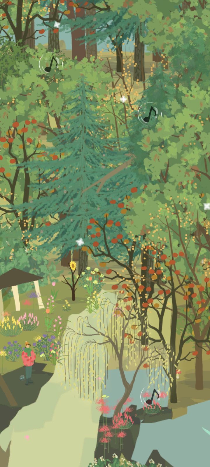 小爱心~献给想get同款的山友~最前面一颗是柿子树(无法替换,因为只有柿子树的底下是尖尖的)后边是三排木犀,一排两棵,距离需要自己目测一下(可以替换为顶上圆圆的树,但只有木犀四季都不会秃头)