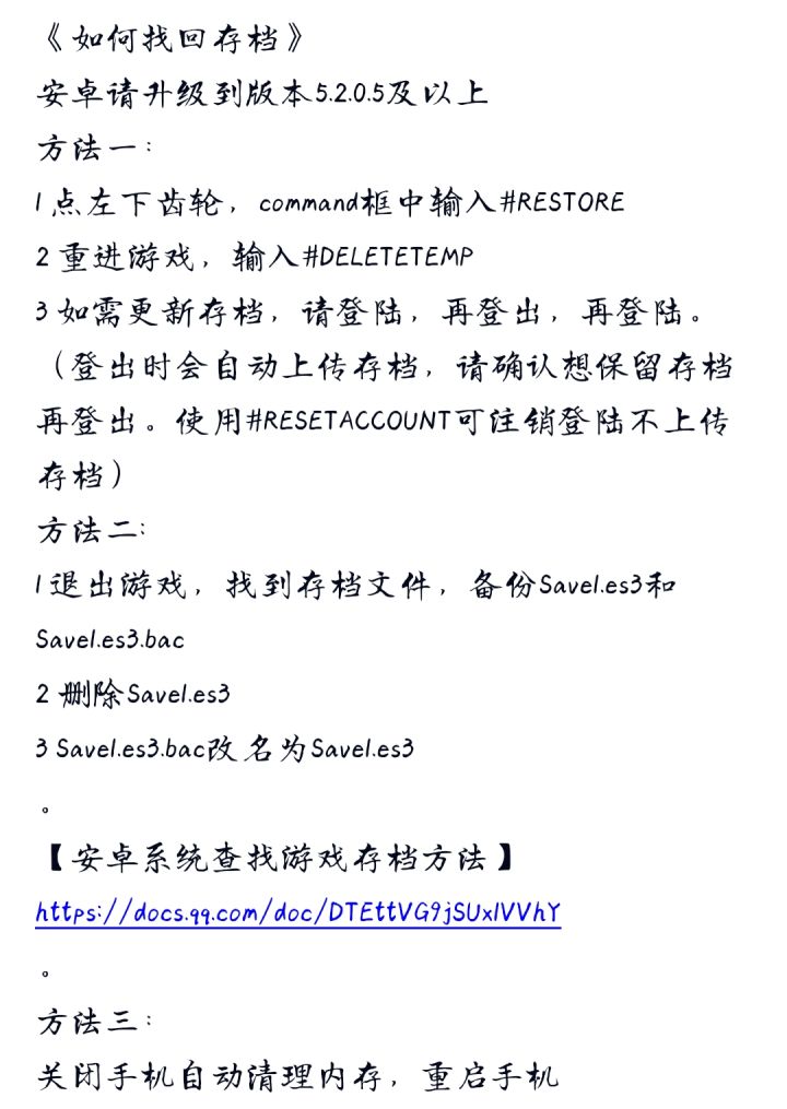 安卓查找游戏存档方法https://docs.qq.com/doc/DTEttVG9jSUx1VVhY游戏存档位置