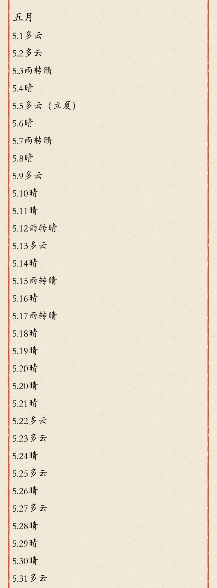 2021 五月天气统计