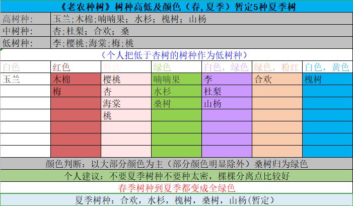 新手必备~ 《老农种树》树种高低及颜色