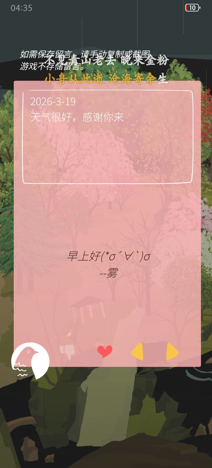 喜欢游戏里前后图层不一样的设计,左右移动像果冻一样,短短的有种裸眼3d的感觉,哈哈哈(ᵒ̤̑ ₀̑ ᵒ̤̑)wow!*✰