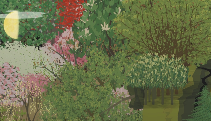 从左到右春夏秋冬,因为各个季节的混在一起录的,有的树可能会被挡住部分 需要的话会把单个季节的也录一下 (同一棵树高度有的时候真的会差很多,都会有变数的所以还是佛系种树好了)