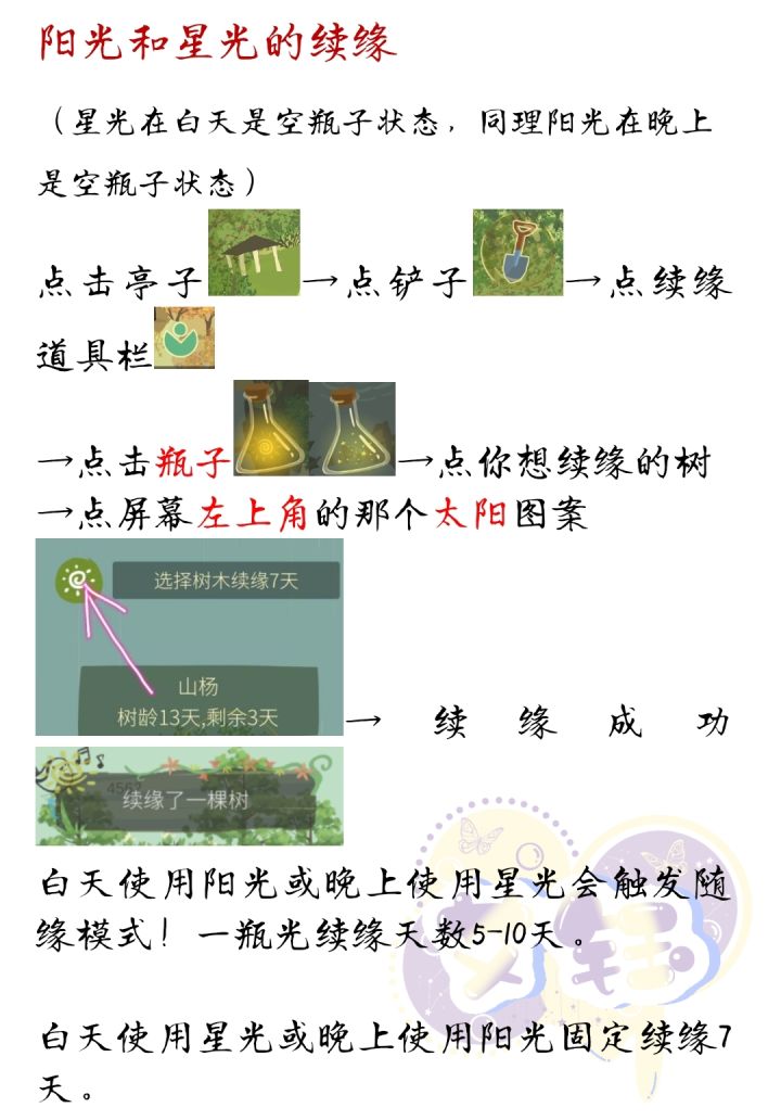 我来啦!续缘包括光续缘,鸟叫续缘,同种种子续缘,葫芦水续缘……还有一些是光的特殊用途哦⊙∀⊙!光的储存数量理论上是莫得上限的(种子也是)当然包括星星树的获取Ps.本攻略来自星星的12345的攻略集合~由来自星星的12345和大鹅等山友共同完成~帖子图片顺序①光续缘②葫芦水续缘,鸟叫续缘和种子续缘③阳光用途,星光用途(附上收集星座的超级无敌的帖子链接!https://www.tap
