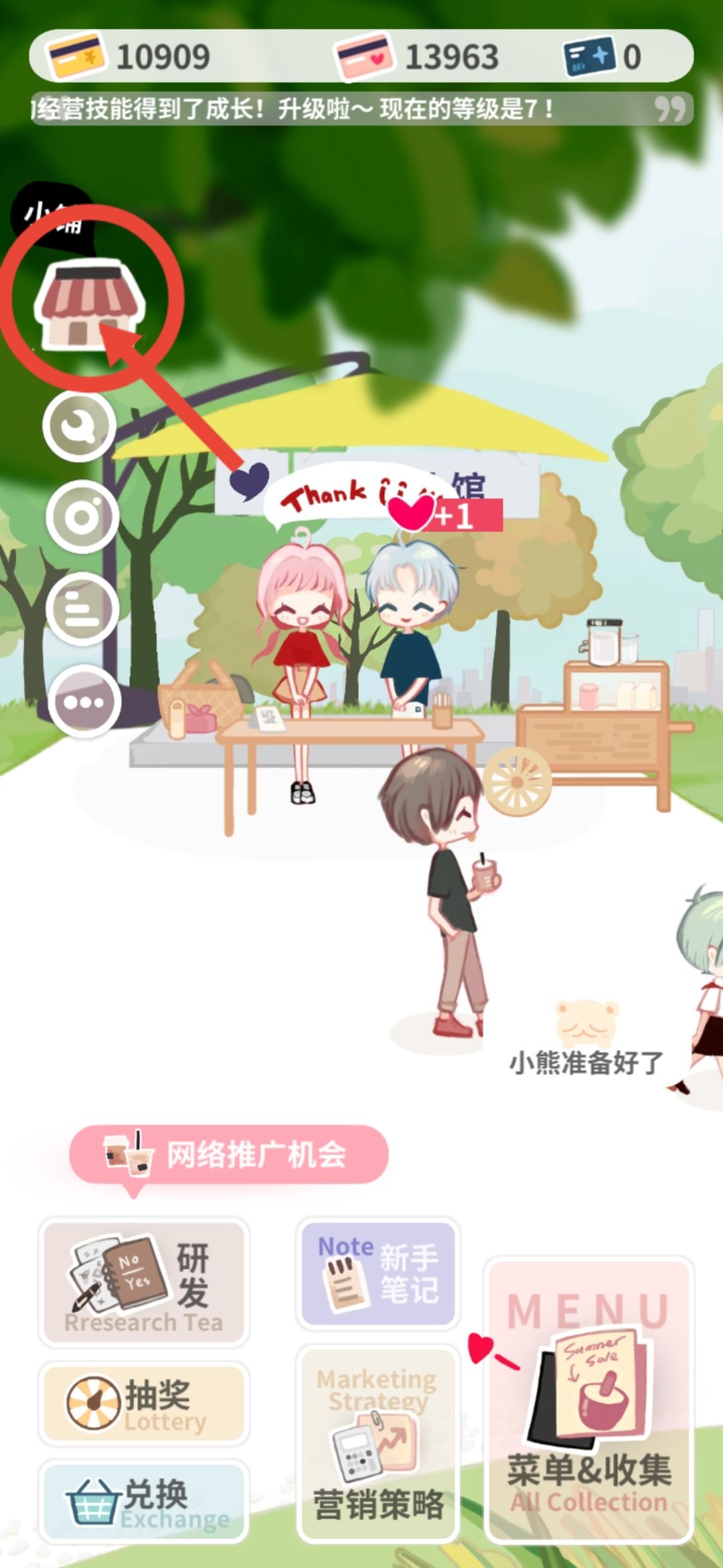 昨天看到有很多小伙伴询问:“店铺评级怎么提升啊?” “店铺评级里的三种经验都怎么提升啊?” “我的营销等级怎么一直不动啊?”之类的话,所以我来写了这篇攻略。 首先店铺评级是有店铺评级界面中的三种板块经验相加得到的。 然后是三种等级的提升 ps:每次的经验获取均为100运气好触发暴击的话为200 ➊研发等级:可以从研发新品奶茶中获取经验 获取难度:☆ 原因:奶茶原料是最好获得的,可能后边会缺少材料,