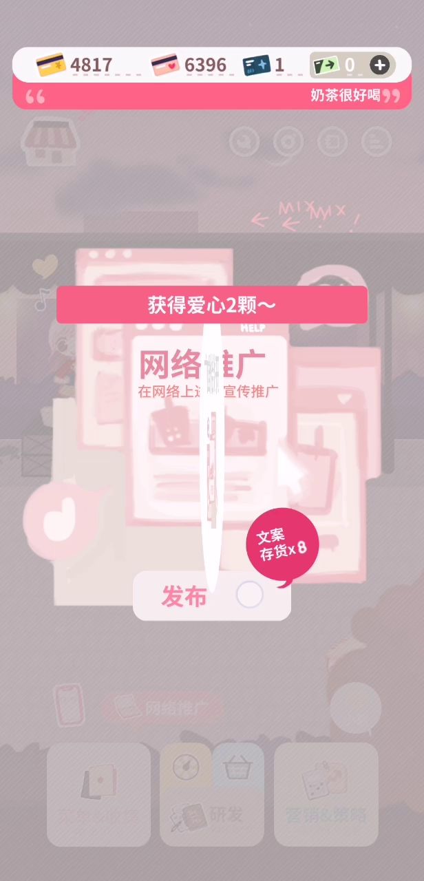 试过一次,用了三个游戏里所有配方都用不到的材料做了一个奶茶(木瓜,迷你蘑菇,可疑饼干)但是是不能上架的奶茶,感觉像是bug