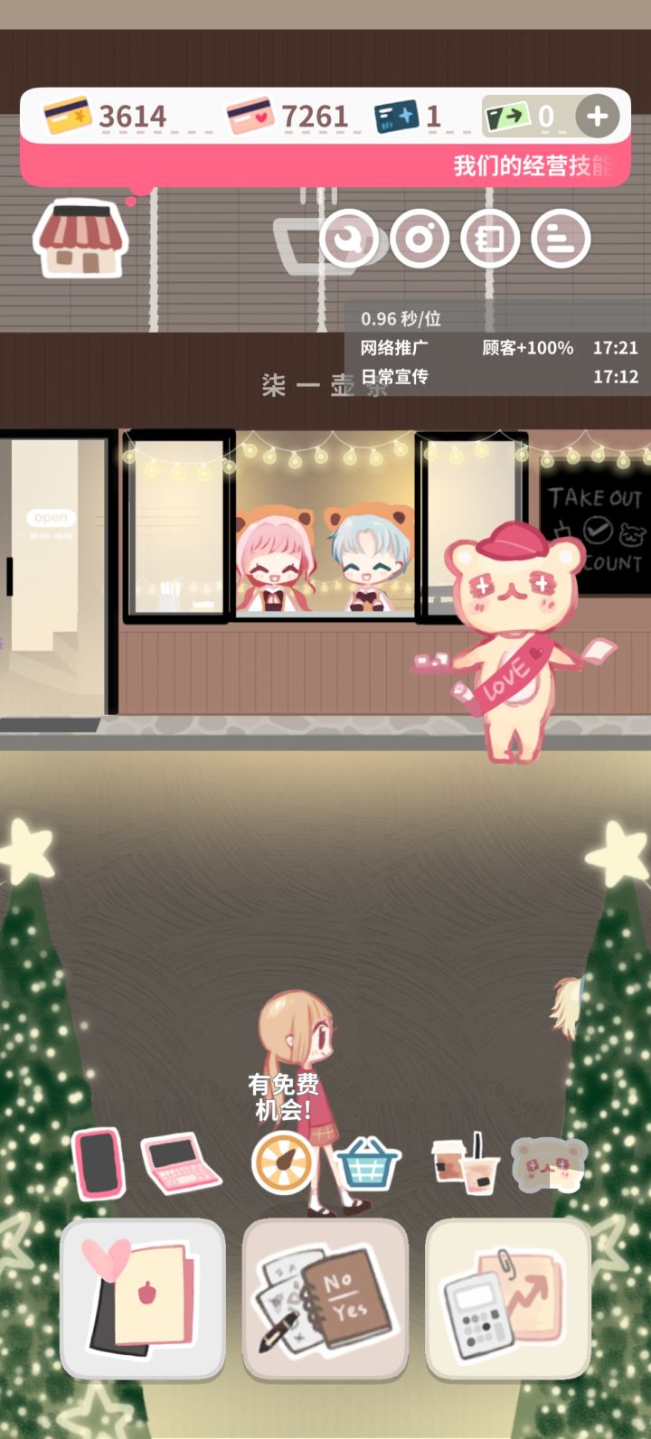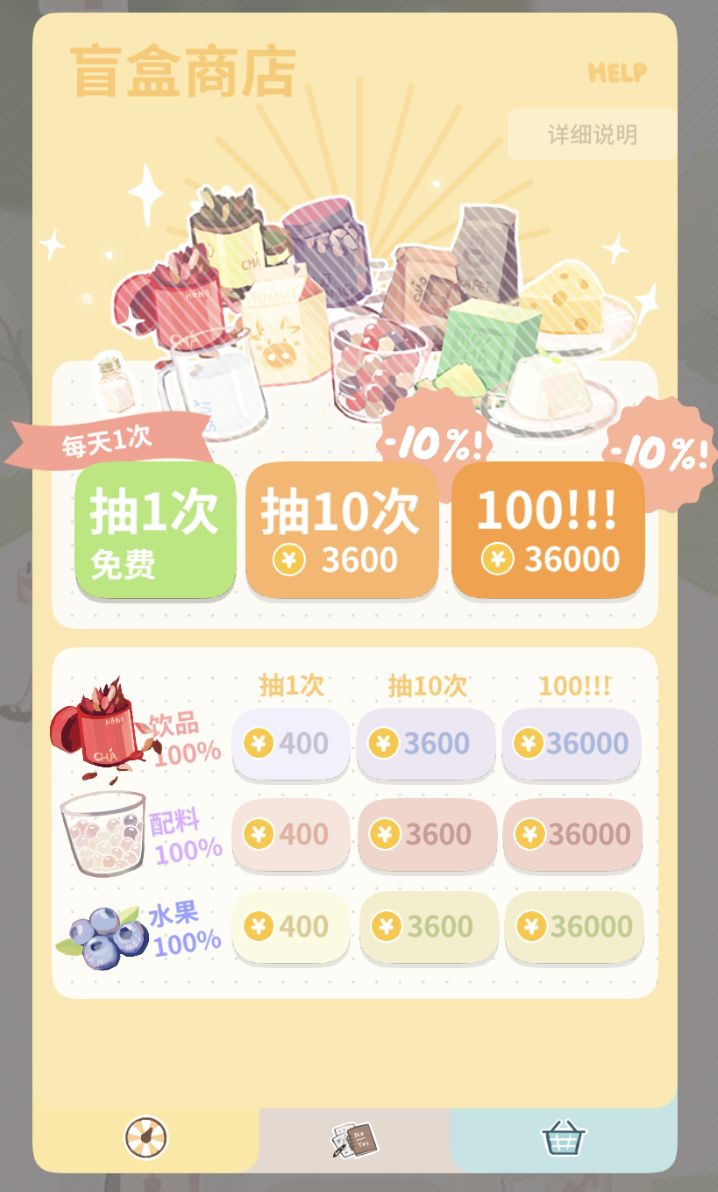 应大家要求新增:1. 抽奖等级九升级到等级十,开放所有特定食材一百抽。2. 兑换商店增加一键购买6个食材。修复与优化:1. 优化顾客购买动画2. 推荐奶茶界面无法下拉问题。3. 修复奶茶均价显示问题。4. 增加游戏整体震动细节。5. 修复和优化整体成就系统兑换码:2025年2月新兑换码:202502(6张广告券)上个月的兑换码失效:202501、dontmindios版本同