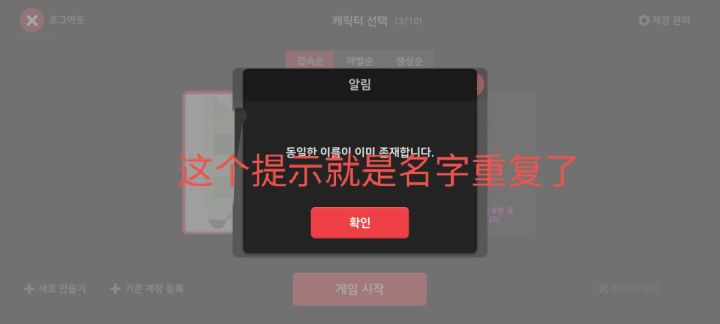 完全進不去,去看翻譯說是名字重複了,但我連續換好幾個都這樣