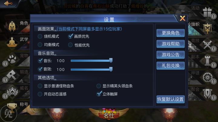 1、不输于端游的画面 细节方面尚待打磨 大家都知道《九阳神功》曾在主机平台上出过一款MOBA作品,且不论游戏成功与否,要适配上电视的大屏幕,游戏在画面上要下的功夫可不是轻易就能够完成的。而手游《九阳神功:起源》在画面的表现上也同样继承了《九阳神功》的画面表现,虽然游戏在视角方面纵向锁死在45度到90度之间(如此的设定也是为了避免玩家拉动视角时产生误操作),但是360自由旋转的视角操作设定还是让玩