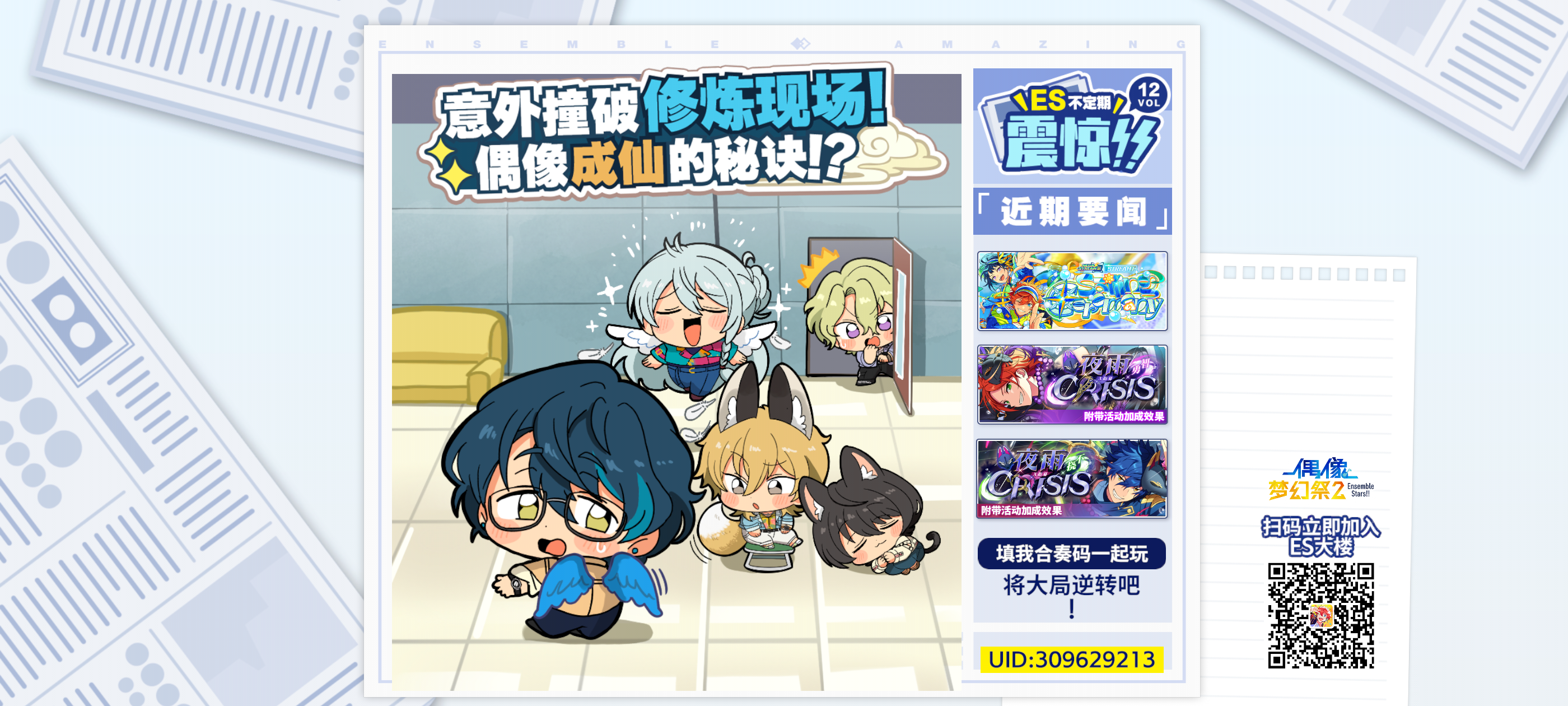 「职场人士☆人生道路全新启程GO! 」将于7月1日开启 「Ra*bits」参加了名为「去男装公司进行职场体验」的节目企划。颠簸在满员电车上,饱受着不习惯的工作的折磨。但在工作的地方,有位新人的状态似乎让创十分在意…… 演唱会活动内容如下: ※ 开放时间: 7月1日12:00 - 7月9日22:00 ※ 本期活动卡为 ★5【朝未来的自己启程!】紫之 创 ★4【探寻可能性的启程】 仁兔 成鸣 ★3【朝