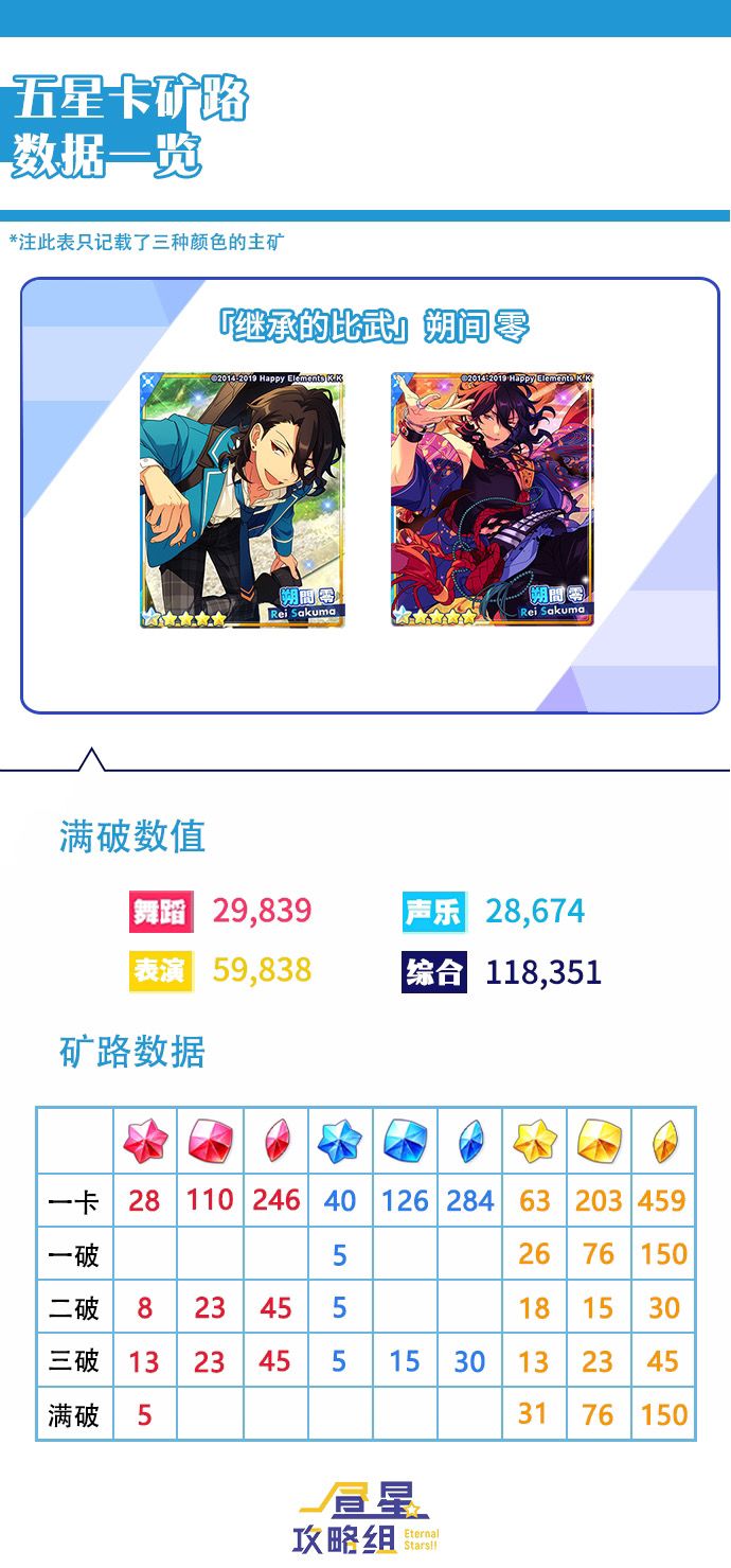 ★矿路数据★ 以下是本期巡演活动★5卡片朔间零、莲巳敬人的矿路数据。