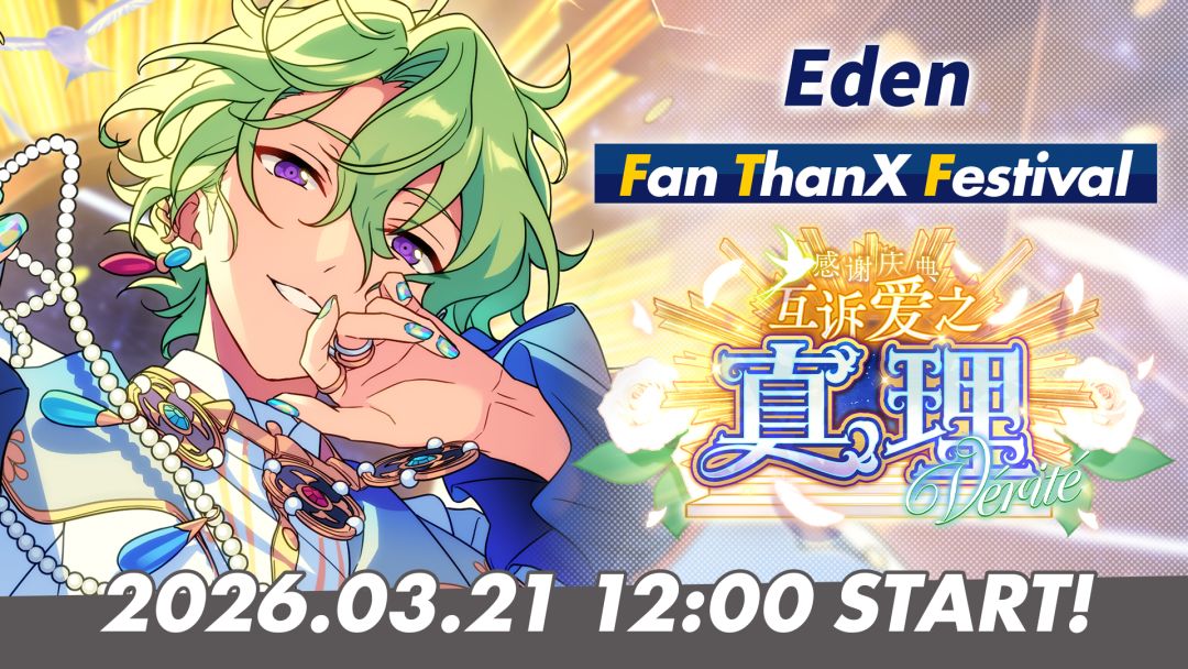 【活动预告】 『大家的爱就是我们的原动力呢 谢谢你们给予的爱!我也同样爱着大家呢……』 随着纯即将迎来海外出道,「Eden」的每一天都在匆忙中度过。考虑到接下来「Eve」将缩小活动规模,日和干劲十足地主导起粉丝感谢庆典的企划,然而巴家的问题却突然在此时浮出水面…… 3月21日,「感谢庆典*互诉爱之真理」开启!