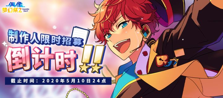 《偶像梦幻祭2》制作人限时招募计划(不计费删档内测)现已开启!亲爱的制作人们:我们将于2020年Q2进行「制作人限时招募计划-第一期(不计费删档内测)」,本次招募为小规模限号首测体验,诚邀各位TapTap玩家前来应聘成为我们首批实习制作人!★招募计划★招募平台:此招募链接仅限TapTap安卓用户测试类型:限时限号不计费删档测试招募方式:即日起开放首测招募问卷,从完成问卷的用户中筛选出符