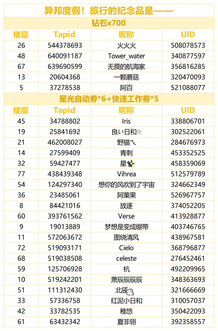 制作人们久等啦,让我们恭喜以下幸运的制作人们!助理君已统计全部正常显示楼层与图片,奖励会在7个工作日内发放到制作人的礼物盒中,礼物盒内奖励保存期限为10天,请注意查收~!制作人们好呀,这里依然是大家的好朋友毛豆豆~中秋假期已经过去,不知道制作人们休息的好不好呀?再坚持一下,马上又能迎来国庆假期了!毛豆豆听说,茨接下了一份外景拍摄工作,现在已经乘坐游轮前往了无人岛( ˶°ㅁ°) !!难道。