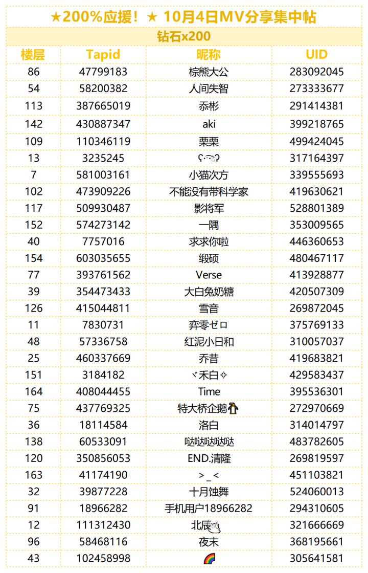 制作人们久等啦,让我们恭喜以下幸运的制作人们!助理君已统计全部正常显示楼层与图片,奖励会在7个工作日内发放到制作人的礼物盒中,礼物盒内奖励保存期限为10天,请注意查收~!【今日MV分享】今日的歌单,是让人怦然心动的歌单♡请制作人们在本帖的评论区分享喜爱的3D MV截图,并附上正确的游戏UID。无论是普通/协力演唱会,还是鉴赏模式都可以哦~符合以上内容视为成功参与今日活动~【活动奖励】助
