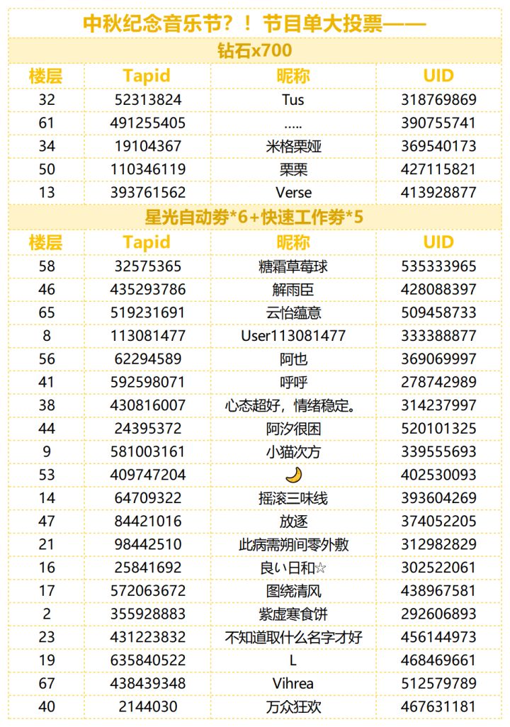 (已开奖)【有奖话题】中秋纪念音乐节?!节目单大投票——