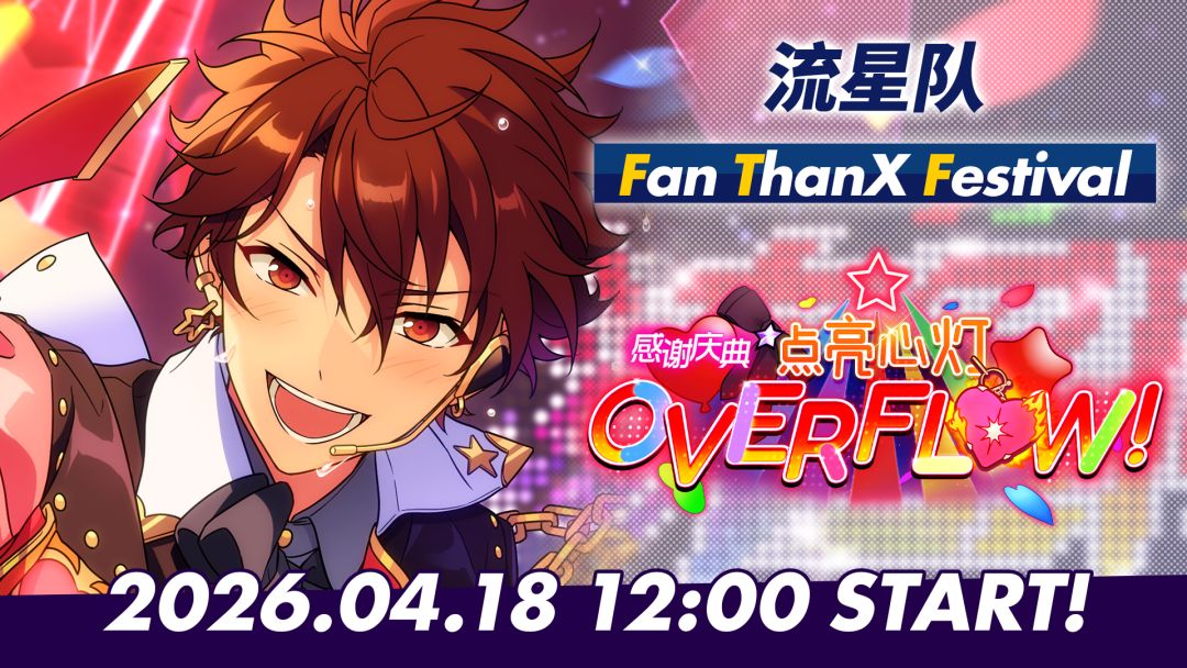 【活动预告】 『正是因为有大家在 我们才能无数次从挫折中爬起来继续战斗! 谢谢大家让我们看到最美好的景色!』 粉丝感谢庆典中将要举办高塔点灯仪式,千秋正在为此推进筹备工作。听闻消息的粉丝寄往「意见箱」的某封信件,让千秋开始烦恼「流星队」的企划是否真的是正确选择。 4月18日,「感谢庆典☆点亮心灯OVERFLOW!」开启!