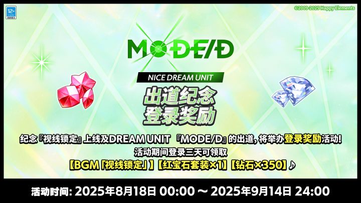 ━━━━━━━━━━━━━━━ 2025.08.17 出道 ✳🟢❇『MODE/D』❇🟢✳ ━━━━━━━━━━━━━━━ 「视线锁定」 -MODE/D MV公开! 8月18日12:00起游戏内将追加歌曲「视线锁定」 -MODE/D