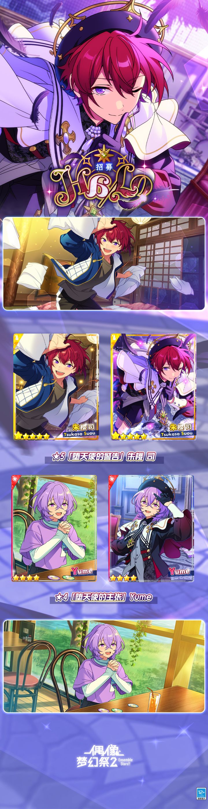 「SHUFFLE×堕天使的晚宴」将于7月26日开启! 为了给司主办的晚宴营造热烈氛围,结成「SHUFFLE组合」的忍一行人将作为嘉宾出演,挑战以「隐藏的面貌」为主题的企划。然而,成员们各自的想法却如同一盘散沙…… 请欣赏本期活动歌曲MV—— 「堕天使们的晚宴」-Ha/Lo