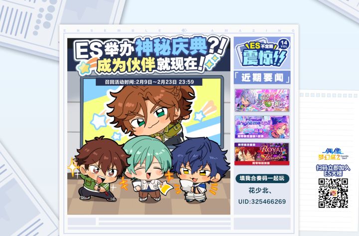 我正在参加ES2「偶像祝福」活动,2026年2月17日起,每天可获得来自偶像最多300钻石的祝福回礼,为彼此送上祝福吧♪