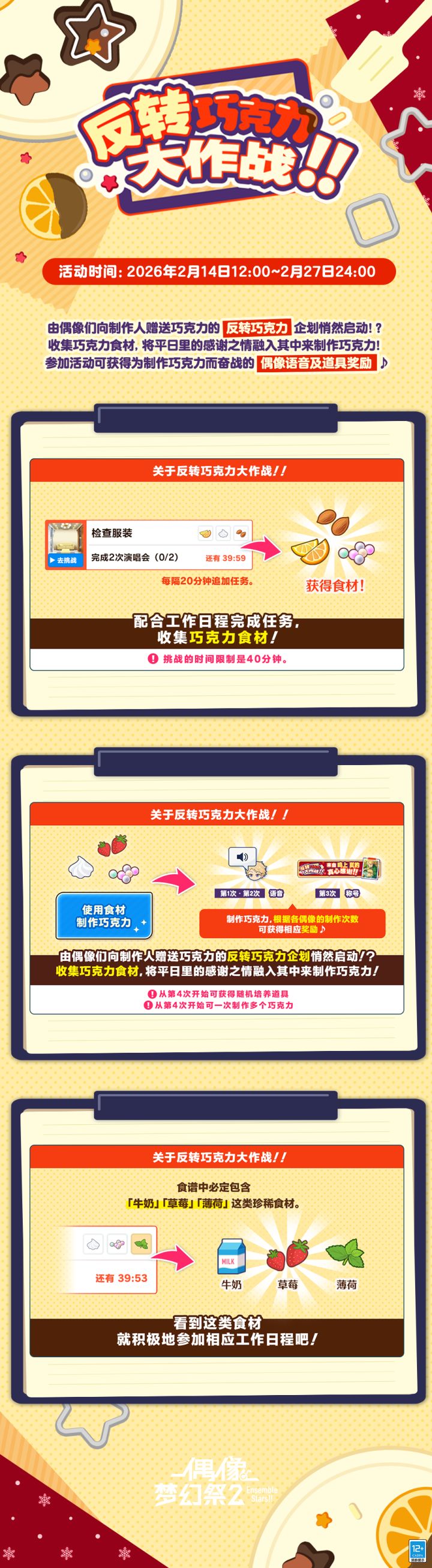 2月16日12:00起,游戏内将追加歌曲:「2wink星烁节拍☆」 -2wink 同时开启【「2wink星烁节拍☆」 登场!公演活动】。2月16日12:00 ~ 2月21日12:00公演活动期间,每日开启限定歌曲掉落UP!具体详情请见游戏内公告。 请欣赏:2wink-「2wink星烁节拍☆」