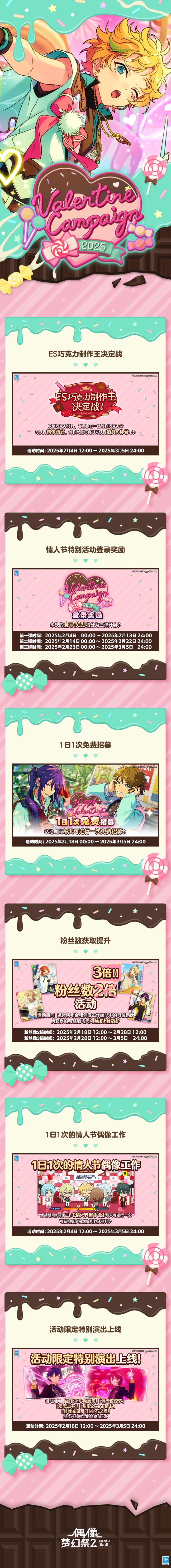 今日送上的是「STARMAKER PRODUCTION」的吉时会友宴语音PV 现在起等级≥10级的制作人重新登录游戏后可在【礼物盒】内领取【上级招募券(限时)x1】的新春礼物 领取时间:2025年1月30日11:00 ~ 2025年2月5日11:00 更多吉时会友宴语音可在游戏内【吉时会友宴】活动中获得! 《偶像梦幻祭2》「执笔绘春」系列活动正在进行中。