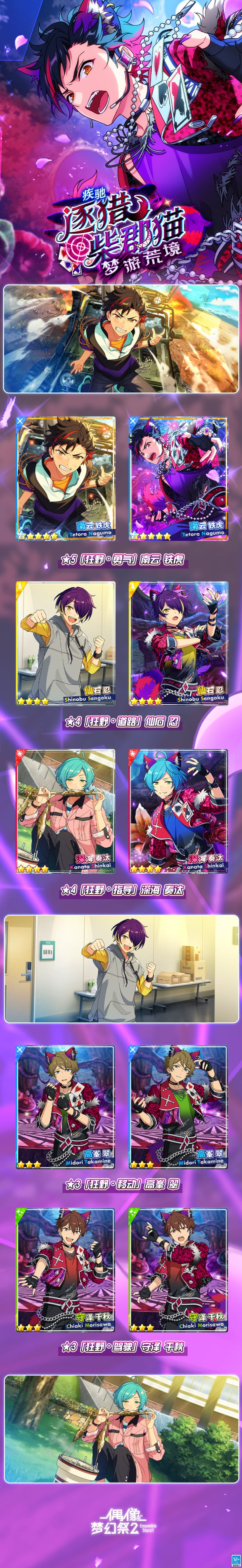 「疾驰◆逐猎・柴郡猫梦游荒境」将于1月25日开启 「流星队」被选中参加主题以「爱丽丝梦游仙境」为灵感的大型活动【梦游荒境】。为表现失去秩序且荒废的狂野世界观,担任队长的铁虎头疼不已。 请欣赏本期活动歌曲MV—— 「荒境求生者」-流星队