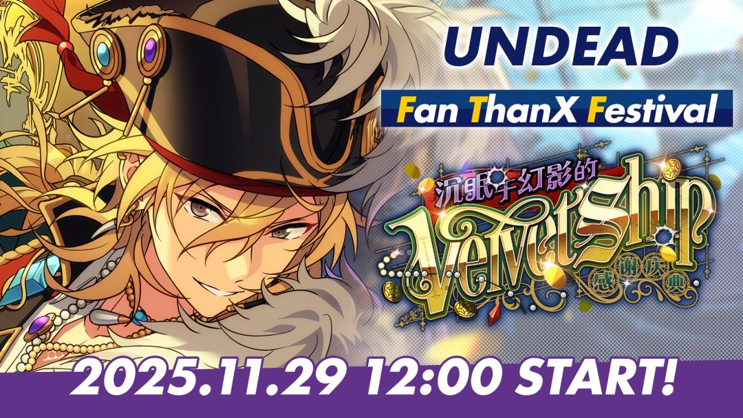 【活动预告】 『谢谢大家一直以来的支持 「寻宝」的时候我们会为大家提供支援 所以不必担心哦……♪』 「UNDEAD」决定选择与自身渊源深厚的「海盗」作为主题来举办粉丝感谢庆典。薰一行人前往港口小镇预先勘察演唱会场地,却遇到了幽灵船受困于小镇之中。 11月29日,「感谢庆典!沉眠于幻影的Velvet Ship」开启!