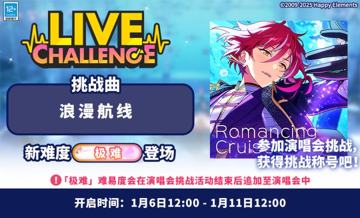 1月6日12:00起,游戏内将追加歌曲:Switch-「再快一点点!!」 同时开启【「再快一点点!!」 登场!公演活动】。1月6日12:00 ~ 1月11日12:00公演活动期间,每日开启限定歌曲掉落UP!具体详情请见游戏内公告。 请欣赏:Switch-「再快一点点!!」