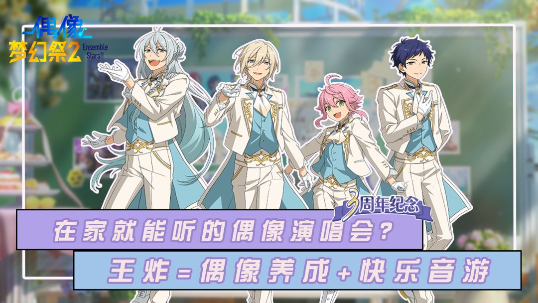 偶像养成+休闲音游=王炸!在家就能让美少年给你来一段激情演唱会,顶级声优阵容、超百万字剧情还有超多高品质音乐的呈现!三周年庆典超多惊喜敬请期待!