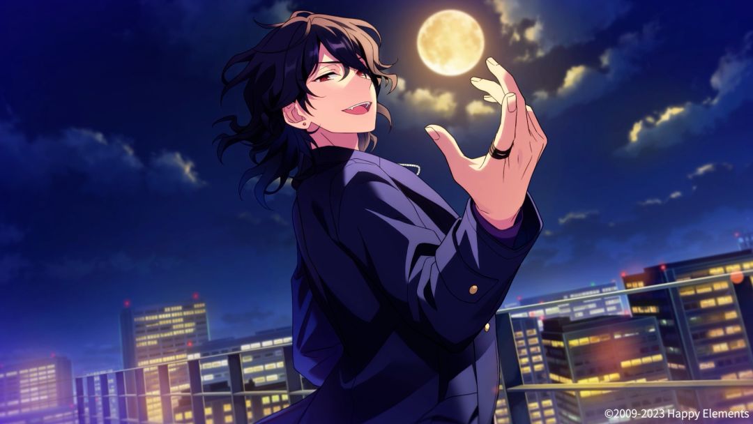 【心动瞬间展示】 ★5 「与夜空接近之地」朔间零的绽放前动态CG【心动瞬间】公开♪ 制作人可在个人故事中观看或是在获得卡片后至首页更换显示-CG-更换图片-【心动瞬间】中设为首页背景。