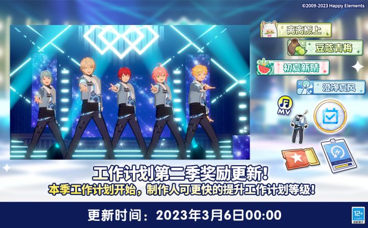 【澄空律动季·工作计划·第一期】已开启!开启时间:3月6日00:00 ~ 4月2日24:00全新季度MV服装【澄空律动系列MV服装】同步上线!※同时【专项事务】中完成任务后获得EXP增加!制作人可在更短的时间内进行工作计划的升级:▶【日常事务】中完成所有任务后活跃礼盒内EXP均有增加,每日完成所有日常事务共可获得EXP由12->24▶【持之以恒】期间消耗BP50点每次可获得EXP由8->