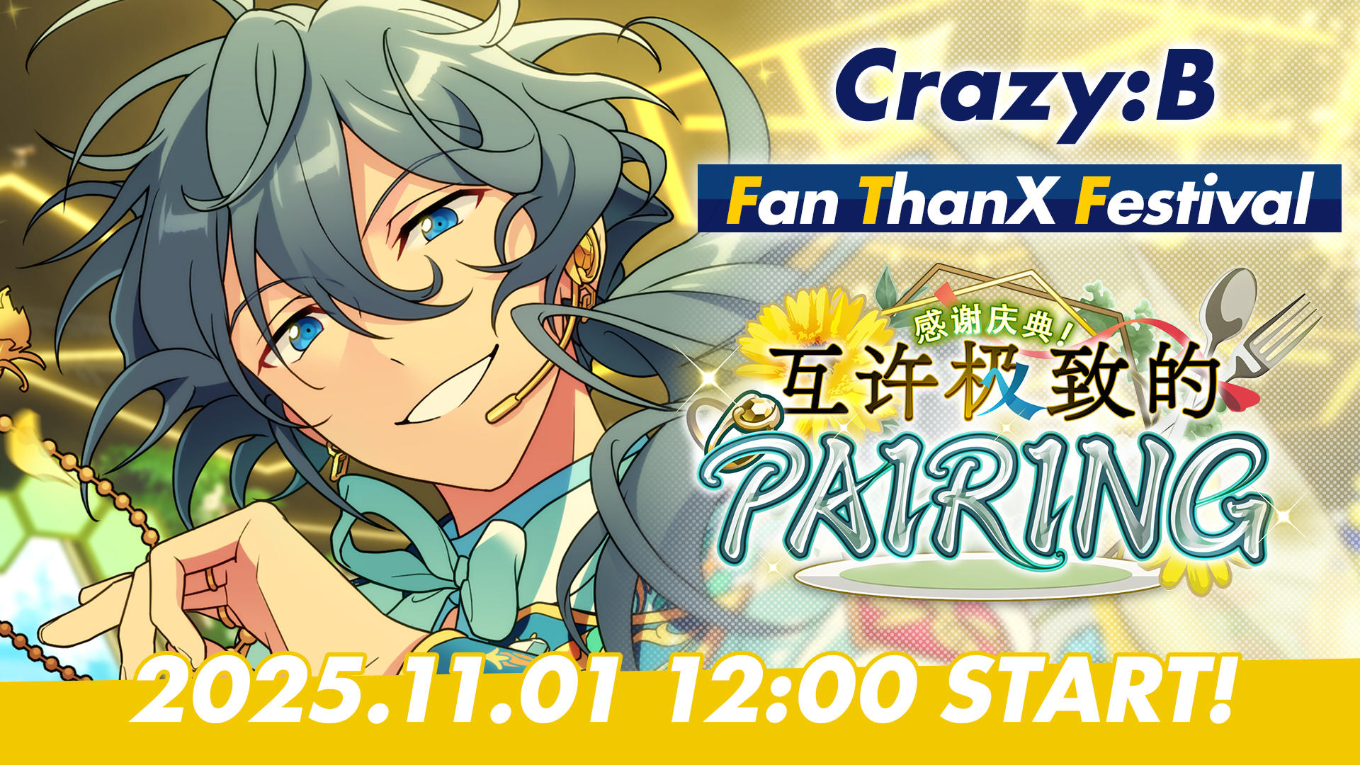 【活动预告】 『我们偶像和粉丝们的相遇 一定会成为无可替代的经历哦!』 「Crazy:B」即将举办粉丝感谢庆典,丹希收到了负责构思内容的命令。然而,有关美食的方案却被悉数驳回。遭遇丹希迁怒的HiMERU决定为企划提供协助…… 11月1日,「感谢庆典!互许极致的PAIRING」开启!