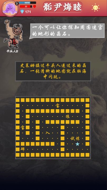 这是一个文字游戏,但是在游戏中加入了许多冒险游戏的玩法,迷宫、开宝箱、战斗升级、商店等。我也在尝试,文字类型的游戏除了剧情以外的其他可能性。《骺尹烸睦》从剧情上来说比较简单,但是加入了语言这一设定,玩家想要完全理解故事,需要把自己的语言天赋点到最高级。还有就是有需要隐藏的分支,玩家可以在自己的战斗力非常强后再探索一遍,也许会有不一样的发现。
